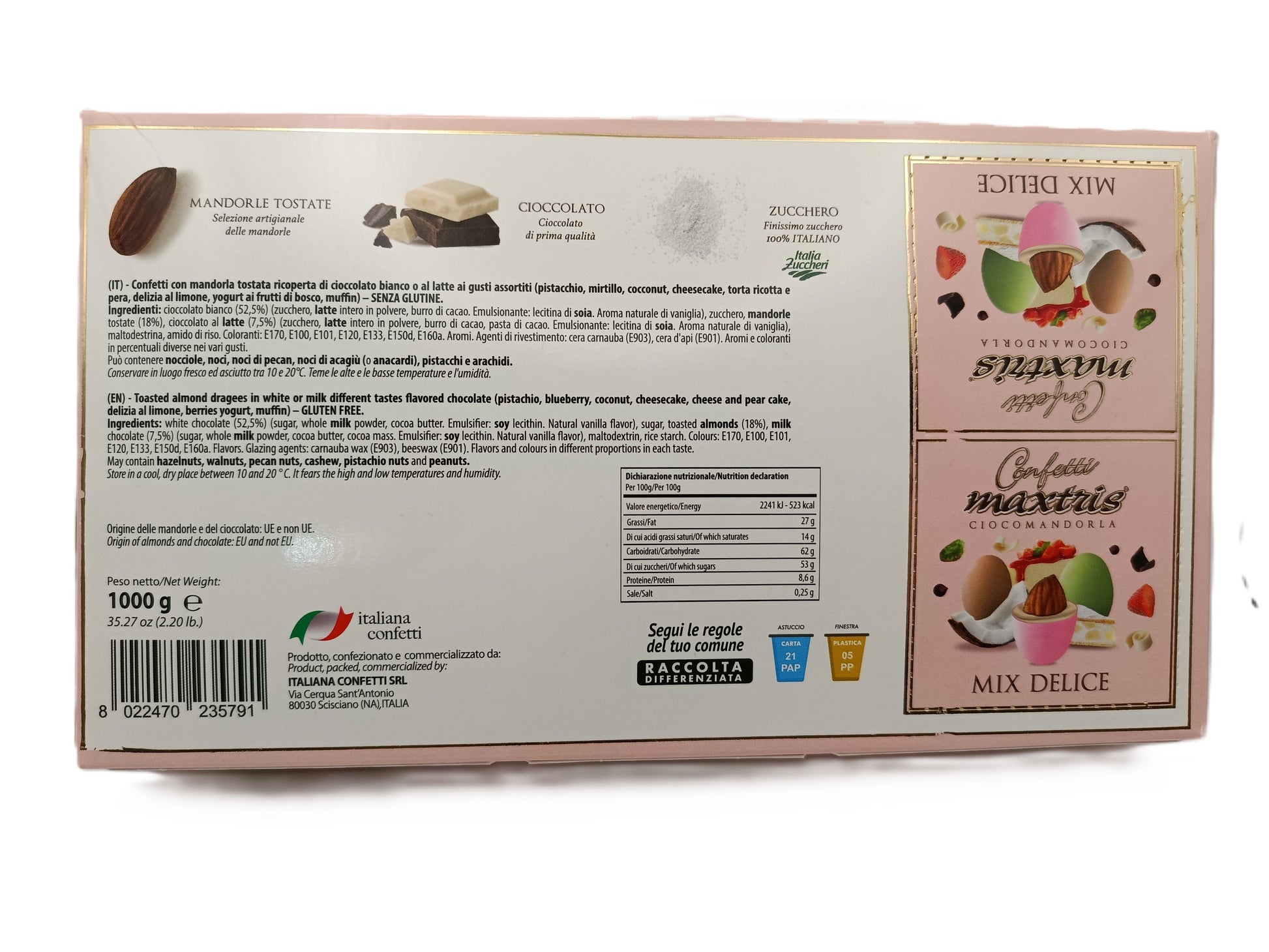 Un mix delizioso di confetti assortiti che offre una varietà di gusti per soddisfare tutti i palati. Perfetto per chi desidera offrire un'esperienza di gusto completa e variegata durante cerimonie ed eventi speciali.