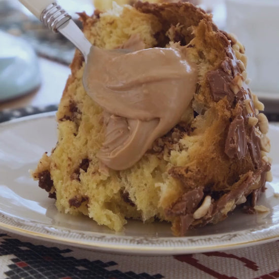 Ingredienti: Farina di FRUMENTO*, Cioccolato di Copertura al LATTE* ( Zucchero, Burro di Cacao, LATTE intero in Polvere,pasta di cacao, LATTE scremato in polvere, LATTOSIO,BURRO, Emulsionante:( Lecitina di SOIA), estratto di malto d'ORZO,Aromi), BURRO, Zucchero,NOCCIOLE Tostate Piemonte )(8,4%), Cioccolato latte 30%:(zucchero, burro di cacao, LATTE intero in polvere, pasta di cacao, LATTE scremato in polvere, LATTOSIO, estratto di malto d' ORZO, Emulsionante(lecitina di SOIA),aromi), Acqua,Lievito Naturale da Madre Bianca Dogliani, (Farina di FRUMENTO, Acqua), Misto d'UOVO, Tuorlo d'UOVO,da allevamento a terra, Zucchero Invertito, Sale, Burro di Cacao, Farina di GRANO di Malto Tenero, Miele, Aromi. *Origine materia prima: UE e NO UE .Gli ingredienti evidenziati possono provocare reazioni in persone allergiche o intolleranti. Può Contenere Tracce di SOIA,SESAMO,ARACHIDI SENAPE e FRUTTA A GUSCIO, conservare in un luogo fresco e asciutto lontano da fonti di calore. DICHIARAZIONE NUTRIZIONALE Valori medi per 100 g. di prodotto Calorie KJ 2161 - Kcal 518 - Grassi(g)33 - di cui Saturi (G)17- Carboidrati(g)46 - di cui Zuccheri (g) 27 - Fibre (g) 1,9 - Proteine (g) 8,4 - Sale (g) 0,47 -